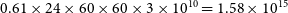 $0.61\times24\times60\times60\times 3\times10^{10}=1.58\times10^{15}$