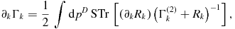 (1) $$\begin{equation} \partial _{k} \Gamma _{k}=\frac{1}{2} \, \int {\mathrm{d}} p^D \, {\rm STr} \, \left[ \left( \partial _{k}R_{k} \right) \left( \Gamma _{k}^{(2)} + R_{k} \right)^{-1} \right], \end{equation}$$