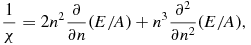 (7) $$\begin{equation} \frac{1}{\chi }=2 n^2 \frac{\partial }{\partial n} (E/A)+ n^3 \frac{\partial ^2 }{\partial n^2}(E/A), \end{equation}$$