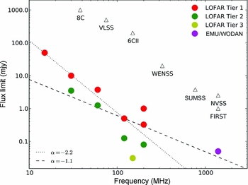 Table 2. Key multiwavelength surveys with which EMU/WODAN data will be cross-identified (restricted to surveys larger than 1 000 deg2) adapted from Norris et al. (2011b). All magnitudes are in AB.