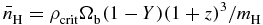 ${\bar{n}}_{\rm H}=\rho _{\rm crit}\Omega _{\rm b}(1-Y)(1+z)^{3}/m_{\rm H}$, is then