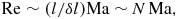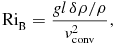 in terms of the local gravitational acceleration g, the density contrast δρ/ρ at the interface, the typical convective velocity v conv in the convective region, and the integral scale l of the convective eddies. Equating l with the pressure scale height l = P/ρg allows us to re-express RiB in terms of the convective Mach number Maconv and the adiabatic exponent γ: