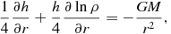 in terms of the pressure P, the density ρ, the proto-neutron star mass M, the enthalpy h, the mass-specific net neutrino heating rate