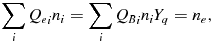 where Q e i is the electric charge and n i the number density of each baryon, lepton, or quark and chemical equilibrium is ensured through