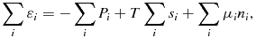 where ε i , P i , and s i are the energy density, pressure, and entropy density of each baryon or quark and T is the temperature. This expression can be rewritten using Equation (6) and the definition of Y q :