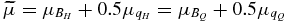 $\widetilde{\mu }=\mu _{B_H}+ 0.5 \mu _{q_H}=\mu _{B_Q}+ 0.5 \mu _{q_Q}$