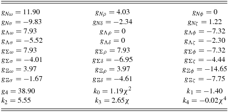 Table 1. Coupling constants for the model, using χ = 401.93 MeV.