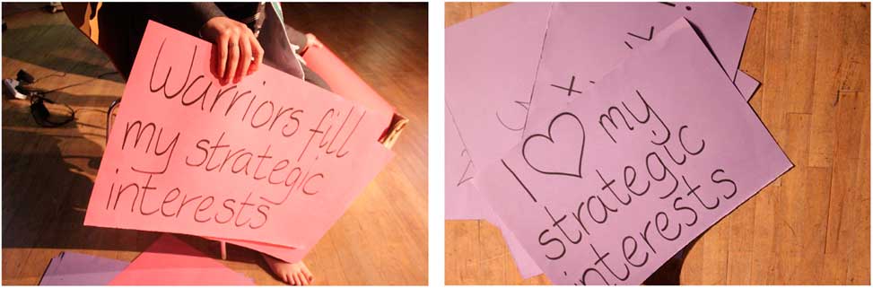 Performance art may reveal what is left out of ‘normal’ practices of disseminating political research; it can show the entangled expressivities and tensions of different spaces and political subjectivities.