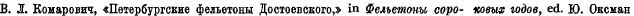 2 Dostoevsky's friends Pleshcheev and Grigorev were writing feuilletons strikingly like his in the late forties—so much so that V. S. Nechaeva, a painstaking scholar of Dostoevsky's texts, was even led to include as part of his “Petersburg Chronicle” a piece that later proved to be Pleshcheev's (see