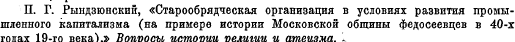 7 Originally, the Old Believers (as exemplified by the Fedoseevtsy) had had a rule of celibacy. The innovators had said that marriage was permissible, and in this way, Ryndziunsky says, came close to the idea of a civil marriage. He adds that the community splintered over the concept of marriage and the family.