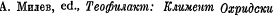 32 The way in which cultivated Byzantine ecclesiastics felt about the Slavic flock entrusted to their care may be learned from the writings of Theophylactus, archbishop of Bulgaria, who, toward the end of the eleventh century, had been sent from the glittering capital of the empire to the cultural desert of the autonomous See of Ochrida. Bulgarians of the early tenth century, among whom St. Clement was spreading the word of God, found little favor with Theophylactus. Bulgarian priests he considered to have been stupid; the rulers of Bulgaria, barbaric by nature, and the Bulgarians in general ignorant, wild, undomesticated, beastlike, and slow in acquiring the knowledge of God. When Theophylactus came to his own parishioners, his language grew even more colorful. Alluding to a passage in Matthew, he compared the Bulgarians to swine possessed by demons; himself, he likened to an eagle wallowing in mud, forced to live with frogs who leap upon the royal bird's back. He deplored the loss of his culture and polish in the midst of his barbarian surroundings and he exchanged books and complaints with a correspondent who was as unhappy as he was about turning into a barbarian in the midst of the Bulgarian population. Both worthy prelates behaved as English officials, jogging along in some far off colony of the empire, might have behaved half a century ago. Cf. Vita dementis, in (), op. cit., § 63, p. 74, 32-33; § 66, p. 76, 8-11; § 67, p. 78, 6-9; § 74, p. 84, 2-3; and the often quoted passages of the Letters, Migne, PG, CXXVT, cols. 464B, 308B, 320C, 396BC.
