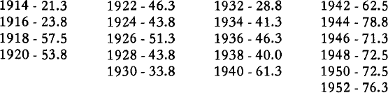 33 Their margin here was 35.6 percent—just over the previously noted 34.0 percent norm for 1922 through 1930.