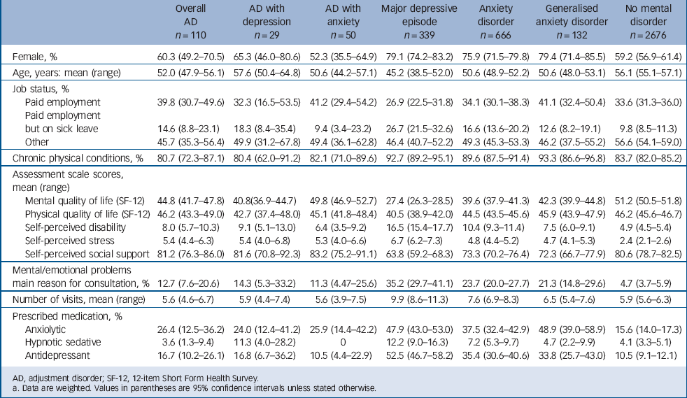 A strength of this study is that it was conducted among a large, representative sample of people attending primary care. Moreover, few studies have been performed with such a large quantity of epidemiological data in primary care that also studied adjustment disorders using SCID-I. Given the revisions of DSM-IV and ICD-10, this is a critical moment for the presentation of data concerning adjustment disorders. However, some limitations should be mentioned. First, we did not specifically assess stressful life events but rather assessed adjustment disorders if participants spontaneously reported a stressful event in the previous months. This may have underestimated prevalence. Nevertheless, those who spontaneously reported a stressful event would be considered as more disabled, assuming we are not medicalising normal stress reactions. Reference Baumeister, Maercker and Casey2 Finally, self-reporting of chronic illness may have complicated the assessment.