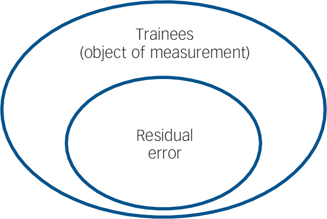 Our results reflect data collected about only two cohorts of trainees on just one postgraduate course. These trainees may not be a representative sample of all trainees on all postgraduate courses throughout the UK or elsewhere. A larger sample size would also have been beneficial. However, the results detailed herein are not at odds with the general picture that has emerged from myriad studies of the health professions over the past few decades. The naturalistic design of the examination procedure meant we could not dissect more fully the large amounts of residual error. This is especially important because we simply do not know what contextual factors influence significantly trainees' (or experts') clinical performances. For example, perhaps important factors include overall experience, experience of the specific presenting problem, characteristics of patients, or aspects of the match between clinicians and patients. It is also possible that our results reflect the fact that trainees are relative novices and therefore apply their knowledge and skills inconsistently in a similar way to learner drivers. Finally, it is worth noting that when a substantial element of any course is supervision of clinical practice by multiple supervisors, the probable nature and quality of trainees' educational experience will be diverse. Reference Keen, Klein and Alexander18