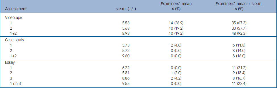 Table 4 The number of trainees failing assessments using standard criteria and inclusion of s.e.m. values