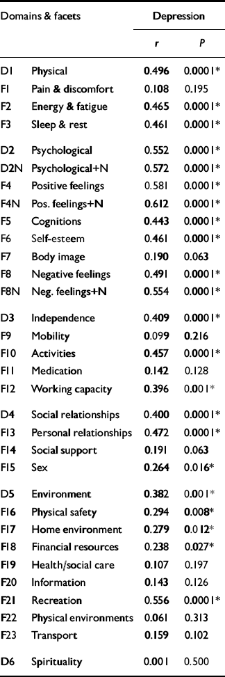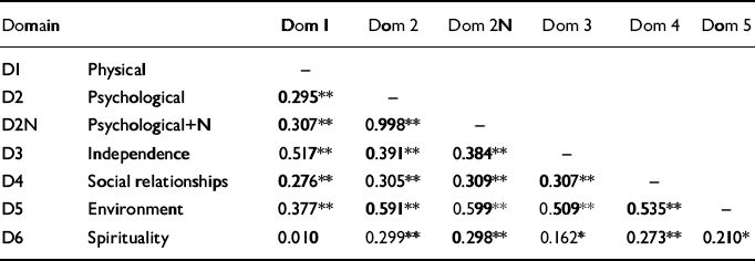 Table 6 Pearson's correlations (I-tailed) between World Health Organization Quality of Life Assessment (100-item version) (WHOQOL-100) domains (D)