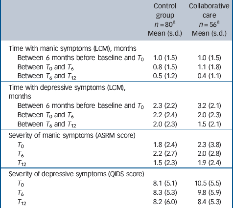 Patients randomised to collaborative care showed more improvement, both in terms of the proportion of time they reported depressive symptoms and in terms of depression severity at the 12-month follow-up. Collaborative care had no effect on symptoms of mania and no effect on medication adherence.