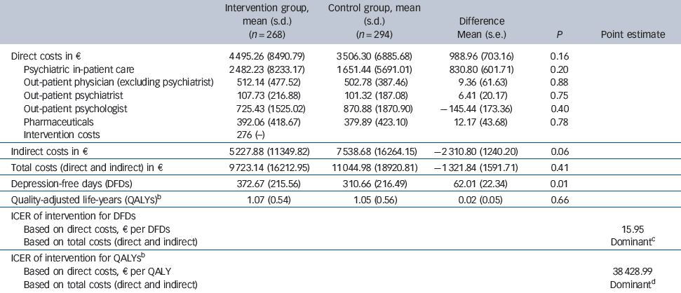 Table 3 Mean costs, mean number of depression-free days and incremental cost-effectiveness ratio (ICER) during 24-month follow-upa