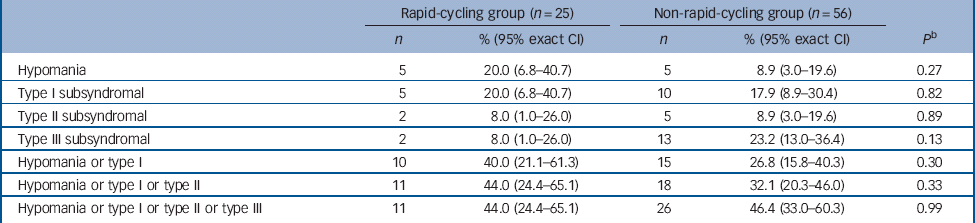 Table 2 Proportion of participants in the rapid- v. non-rapid-cycling group with treatment-emergent hypomania a