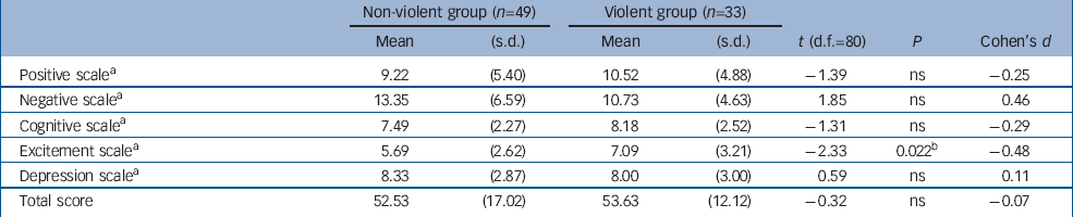 Table 2 The mean Positive and Negative Syndrome Scale (PANSS) scores for non-violent and violent groups