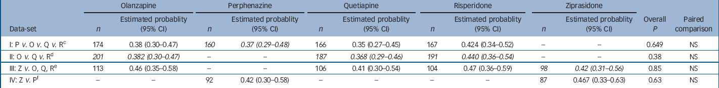 NS, not significant; O, olanzapine; P, perphenazine; Q, quetiapine; R, risperidone; Z, ziprasidone