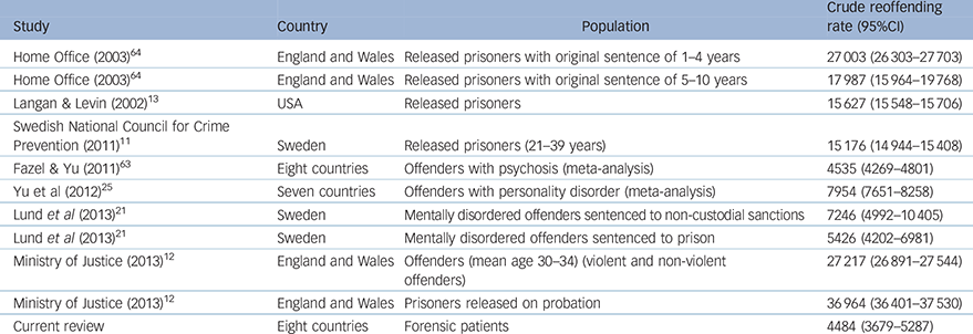 Table 2 Reoffending rates for populations comparative with forensic patients