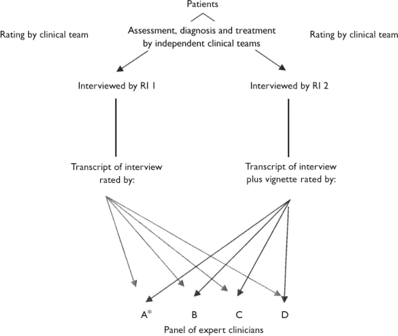 Fig. 1 Scheme of ratings. *Expert clinician A also rated MacArthur Competence Assessment Tool for Treatment (MacCAT–T) sub-scales.