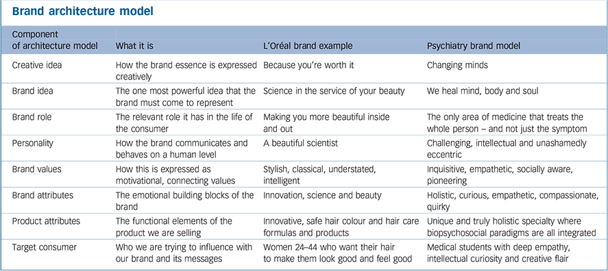 Developing a coherent brand that potential recruits can identify with might appear challenging. There are positive associations about psychiatry, however, even these can seem wildly disparate and contradictory, how can reassuringly scientific activities such as reading brain scans and intriguingly creative pursuits such as interpreting dreams possibly fall within the same specialty? However, we would argue that we should embrace these differences and incorporate them within our brand. We need to be clear that we are interested in the small number of doctors who can embrace the fields of science and the arts and also be confident enough to handle uncertainty and ambiguity. This of course does not appeal to the medical masses, however, it can also be a selling point. Niche brands such as Marmite have famously maximised their market share through making a virtue out of proudly advertising that they are not for everyone. Reference Mahdawi4
