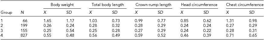 Morphological development of each twin was assessed on the basis of six somatic traits: (1) body weight, (2) total body length, (3) crown-rump length, (4) shoulder width, (5) circumference of the head, and (6) circumference of the chest. Definitions of all these traits and methods of their measurement were consistent with conventional methodology proposed by Martin (Reference Martin1988).