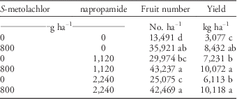 Table 6 Influence of S-metolachlor and napropamide on bell pepper yield.Footnote a , Footnote b