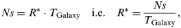 $$Ns = R^ * \cdot T_{{\rm Galaxy}} \quad {\rm i}.{\rm e}.\quad R^ * = \displaystyle{{Ns} \over {T_{{\rm Galaxy}}}}, $$