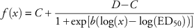 ). A four-parameter log-logistic equation (f(x)=C+D−C/1+exp[b(logx)−log(ED