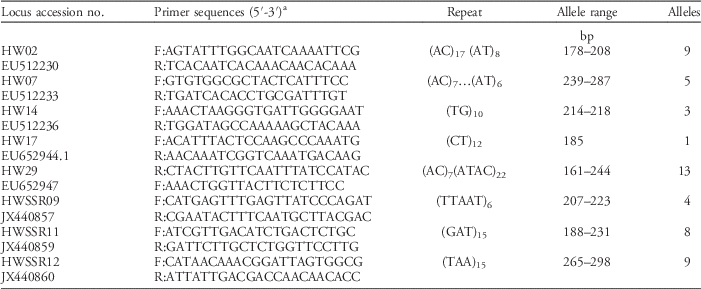 Table 1 Simple sequence repeat markers for Conyza canadensis.