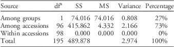 Table 3 Hierarchical analysis of molecular variance based on simple sequence repeat (SSR) data for Conyza canadensis.a , Footnote b