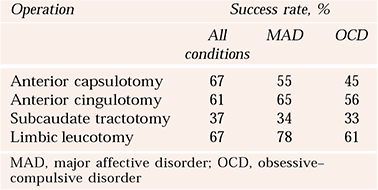 Table 1 Combined outcomes per procedure for neurosurgical procedures for mental disorder (Reference Spangler, Cosgrove and BallantineSpangler et al, 1996)