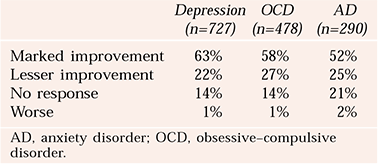 Defining success as a score of 1 or 2 on the Clinical Global Impression – Improvement Score (CGI–I; Reference GuyGuy, 1976), Reference Spangler, Cosgrove and BallantineSpangler et al(1996) collated composite results for published reports up to 1996 (Table 1).