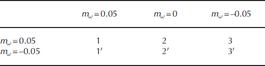 It is assumed that 12, 13 and ω are determined from an experiment with certain accuracy and their random variations around actual values 12,0, 13,0 a n d 0 are equal to 12, 13 and . Quantities mω = ω, m γ12 = Δγ12/γ12,0 and m γ13 = Δγ13/γ13,0 are the relative errors of the measurements of the wave frequency ω and the ratios 712 and 713. They influence errors in the calculation of the ice flexural stiffness and the water depth. Further, we analyse the dependence of the relative errors in the calculation of the flexural stiffness md = Δd/d0 and the water depth mH = ΔH/H0 from the relative errors mu, m 2 and m 13. Numerical estimates are performed with m 12 = m 13 = m 7 = ±0:05 where m w is equal to -0.05, 0 and 0.05.