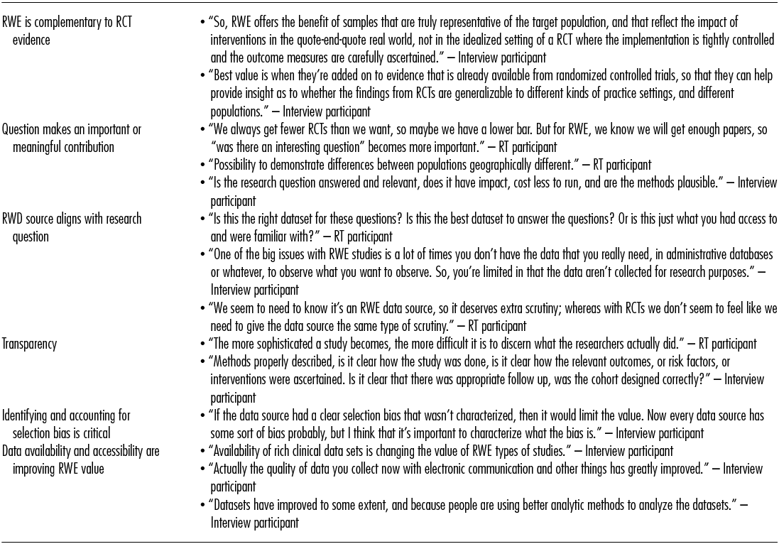 Table 2. Comments from Interviews and RT Discussion on Value of RWE