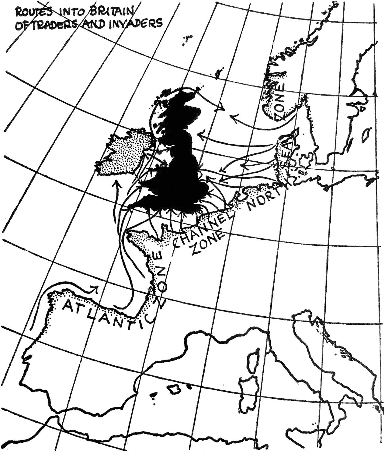 Fig. 2 Connections between the near continent and Britain/Ireland according to Fox (Reference Fox1938, front cover)