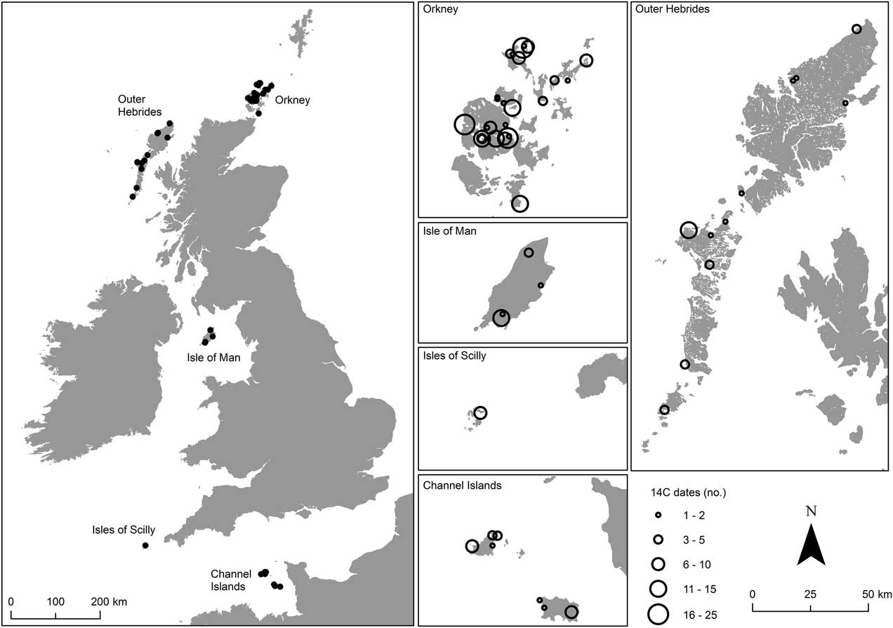 Details of the modelling approaches for Orkney are given in Griffiths (Reference Griffiths2016), and details of the radiocarbon analysis for the Isle of Man are given in Whittle et al. (Reference Whittle, Bayliss and Healy2011).