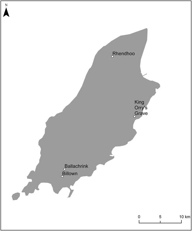 The evidence for Neolithic settlement on the island is very limited. The only excavated Early Neolithic occupation site is Billown (Table 4; Darvill Reference Darvill2000; Reference Darvill2001; Whittle et al. Reference Whittle, Bayliss and Healy2011, 554–61 & 808), although material culture has been recovered from another presumed occupation site at Phurt/Port Cranstal (Burrow Reference Burrow1997, 43). Our database contains relevant radiocarbon dates from three further sites: Rhendoo, an excavation producing typologically Late Mesolithic material (McCartan & Woodman Reference McCartan and Woodman1994); Ballachrink, a trench containing early 5th millennium cal bc arguably ‘cereal-type’ pollen (Innes et al. Reference Innes, Blackford and Davey2003); and King Orry’s Grave, a Neolithic tomb (Burrow Reference Burrow1997; Fig. 8). However, all of these were obtained either from old wood or unspecified charcoal samples. Whittle et al. (Reference Whittle, Bayliss and Healy2011, 808) note a further date ‘allegedly from below a cist’ at Port St Mary, but this was considered too uncertain a context to include.