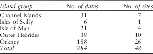 Table 2 Summary of dated sites from the Channel Islands (see Appendices for details)