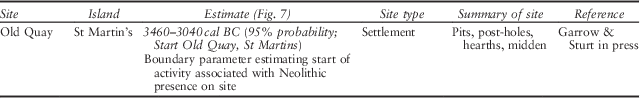 Table 3 Summary of dated sites from the Isles of Scilly (see Appendices for details)