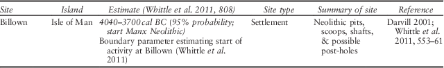 Table 4 Summary of dated site from the Isle of Man (see Appendices for details)