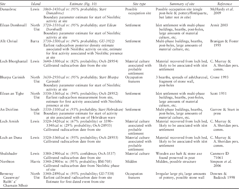 Table 5 Summary of dated sites from the Outer Hebrides (see Appendices for details)