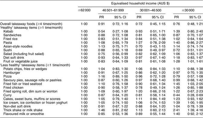 Table 4 PR and 95 % CI for differences in takeaway food consumption by household incomeFootnote *