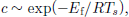 Reference Petit, Duval and LoriusPetit and others (1987) proposed that the growth rate K could depend on the temperature of the snow at the time of deposition. They assumed that the grain-boundary mobility μ, and consequently K, were proportional to the concentration of interstitials (point defects), c, which in turn was supposed to follow an Arrhenius temperature dependence: