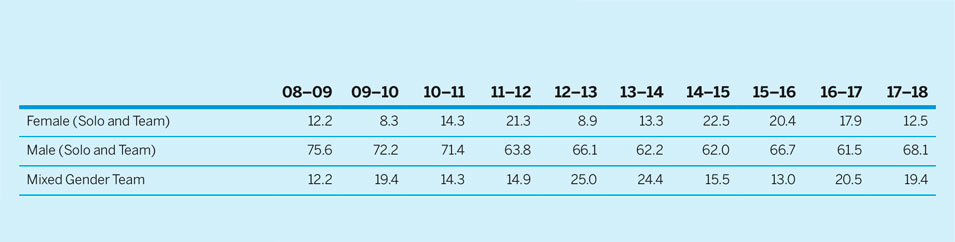 Table 6 Gender Mix of Accepted Papers (in percent of total)