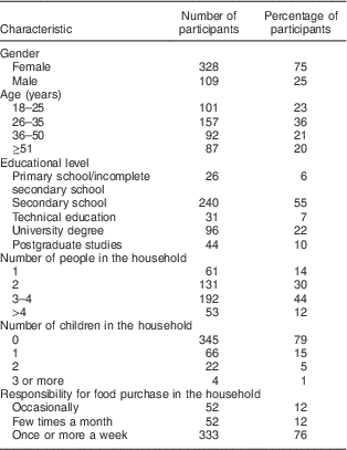 Table 2 Sociodemographic characteristics of the participating adults aged 18–77 years (n 437), Montevideo, Uruguay