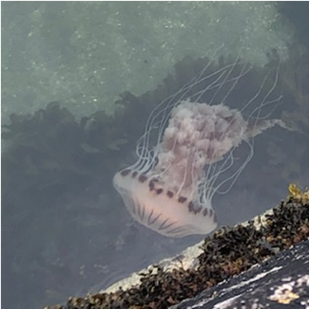 The images presented in Figure 7 are examples of jellyfish I co-inhabit the sea with when I swim. I see them, feel them, and aim not to have the boundary between us punctuated by a sting. While their presence does heighten my own vulnerability in the water—a space swimmers firmly recognise as a more powerful space—I am struck by their ability to survive.